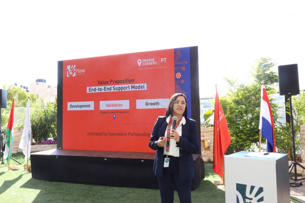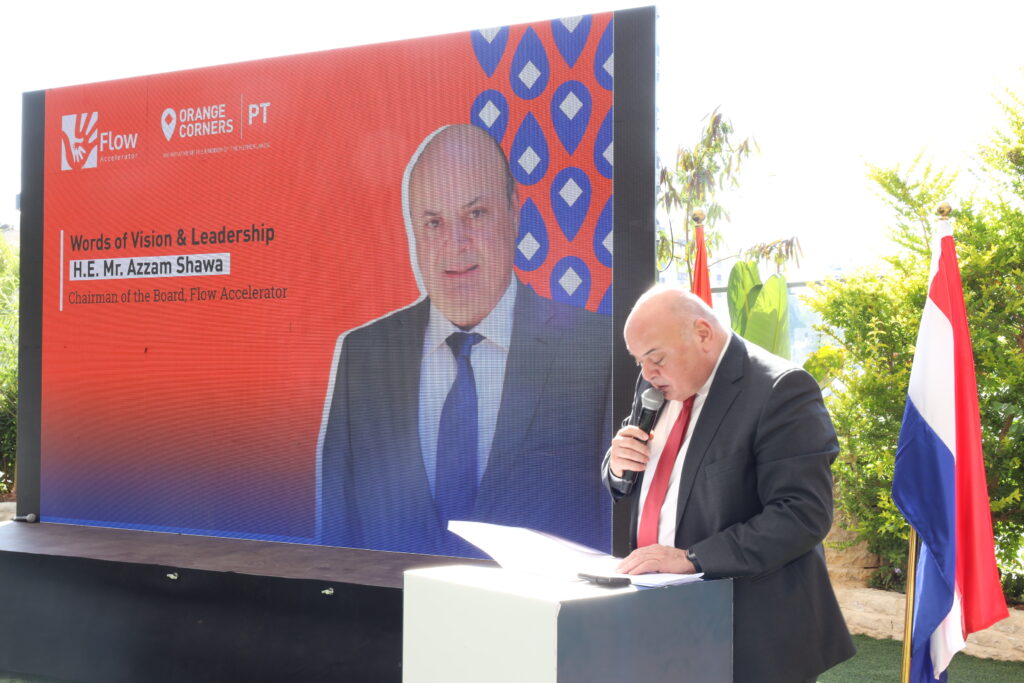 Ms. Majd Khalifeh, Co-founder and Managing Director of Flow Accelerator, delivered a program reflection, underscoring the significant milestones and success stories from Cycle 7. She also emphasized the long-term, sustainable partnership with the Netherlands Enterprise Agency (RVO) and Orange Corners, which plays a foundational role in Flow’s end-to-end support model—a model designed to guide entrepreneurs from ideation through early growth stages and beyond.